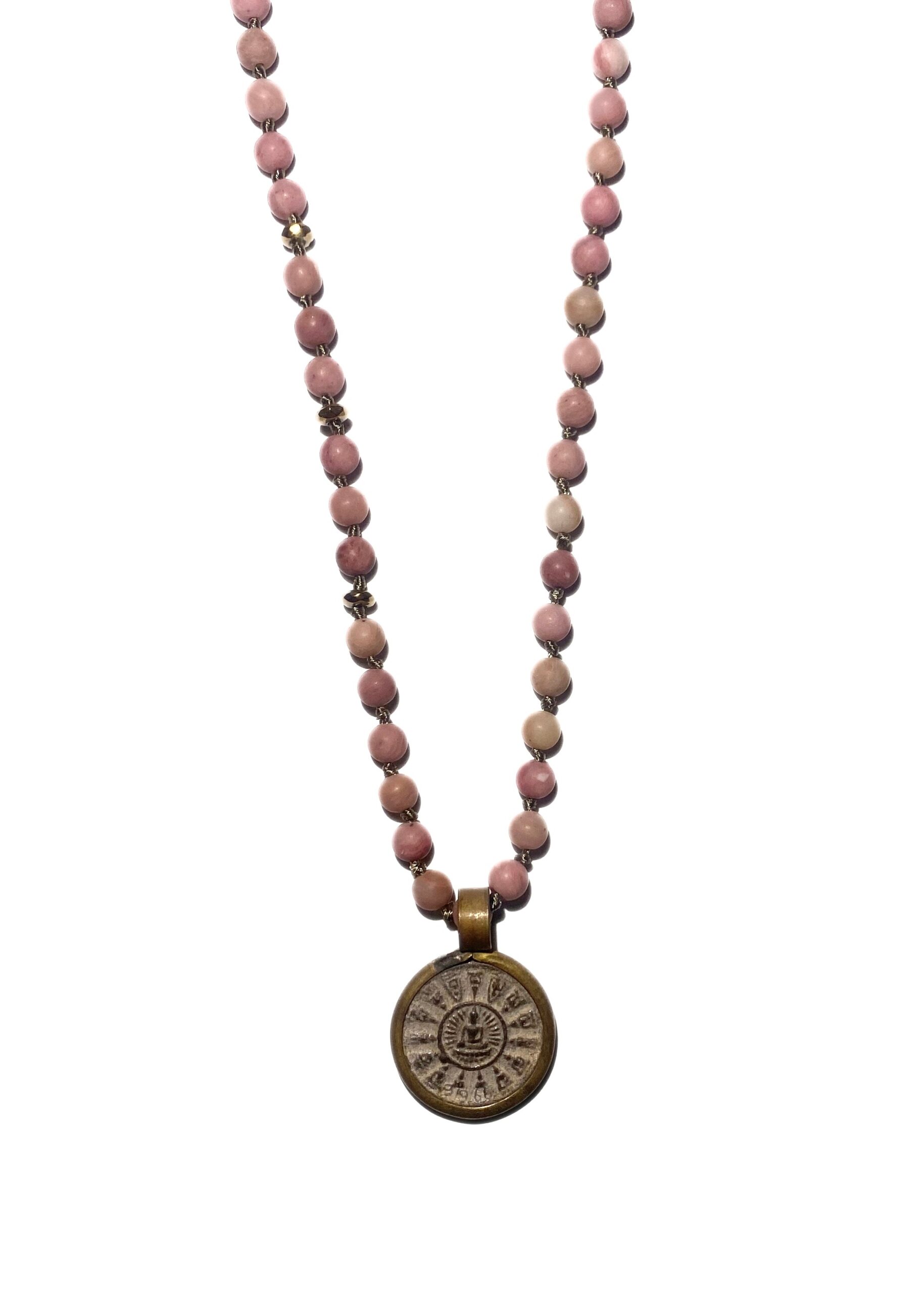 A 4 mm stone yoga necklace with a Buddha amulette charm.