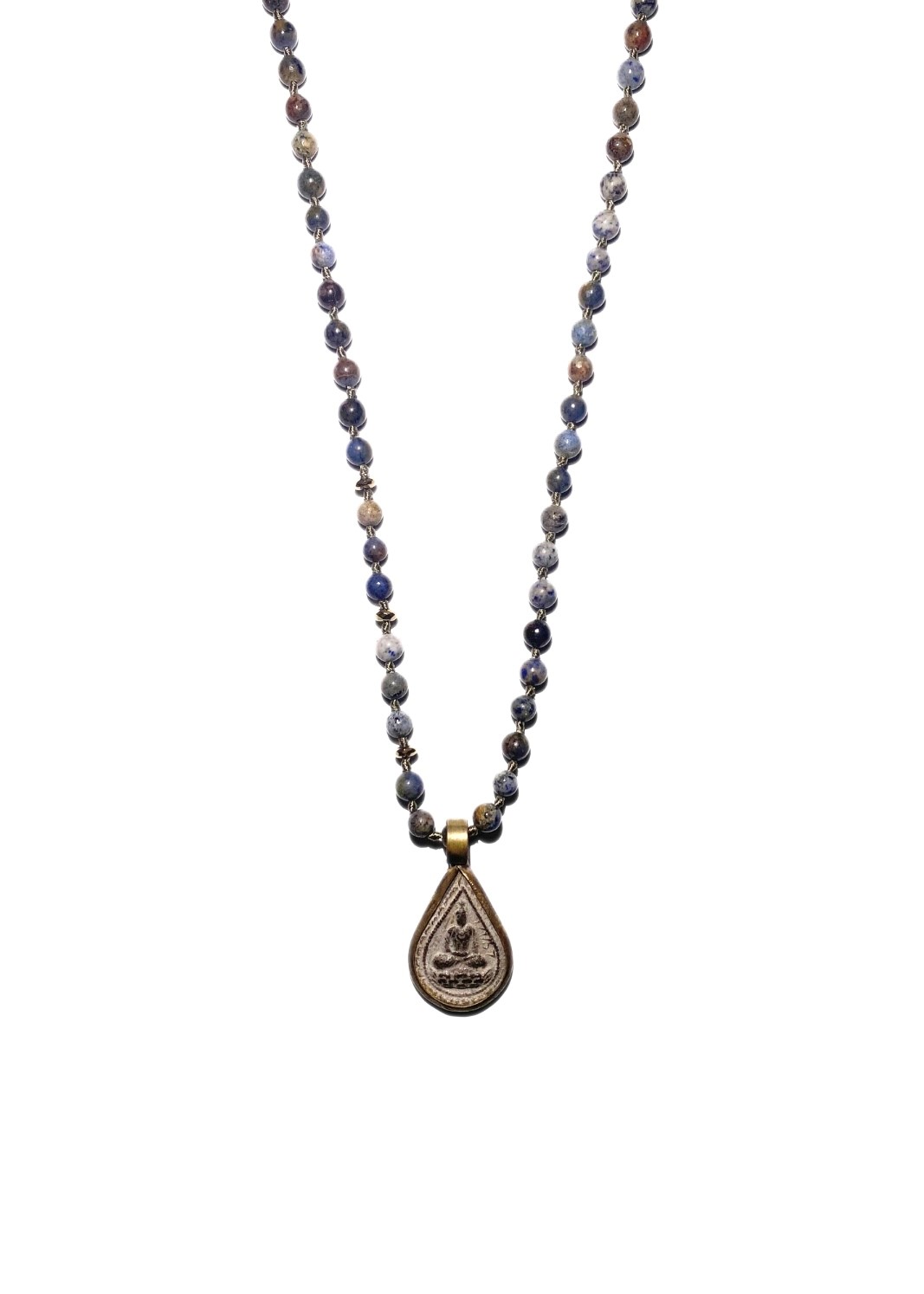 A 4 mm lava stone yoga necklace with a Buddha amulette charm.
