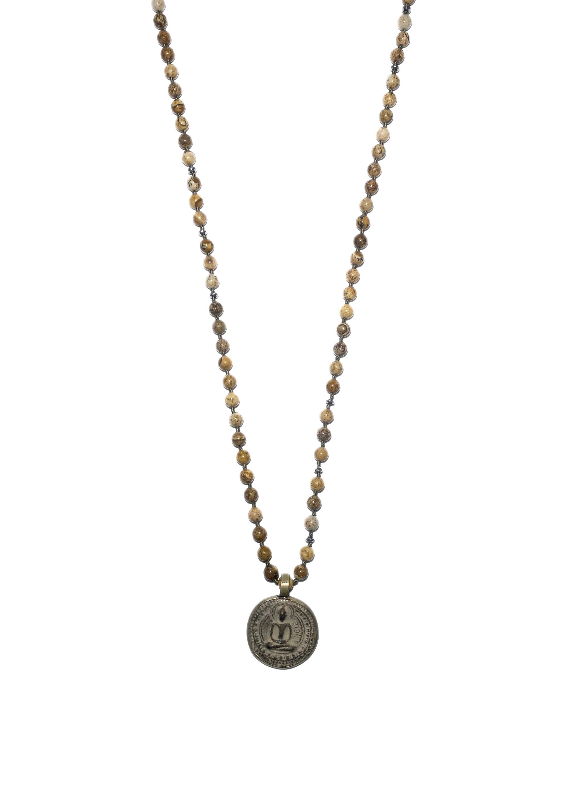 A 6 mm stone yoga necklace with a Buddha amulette charm.