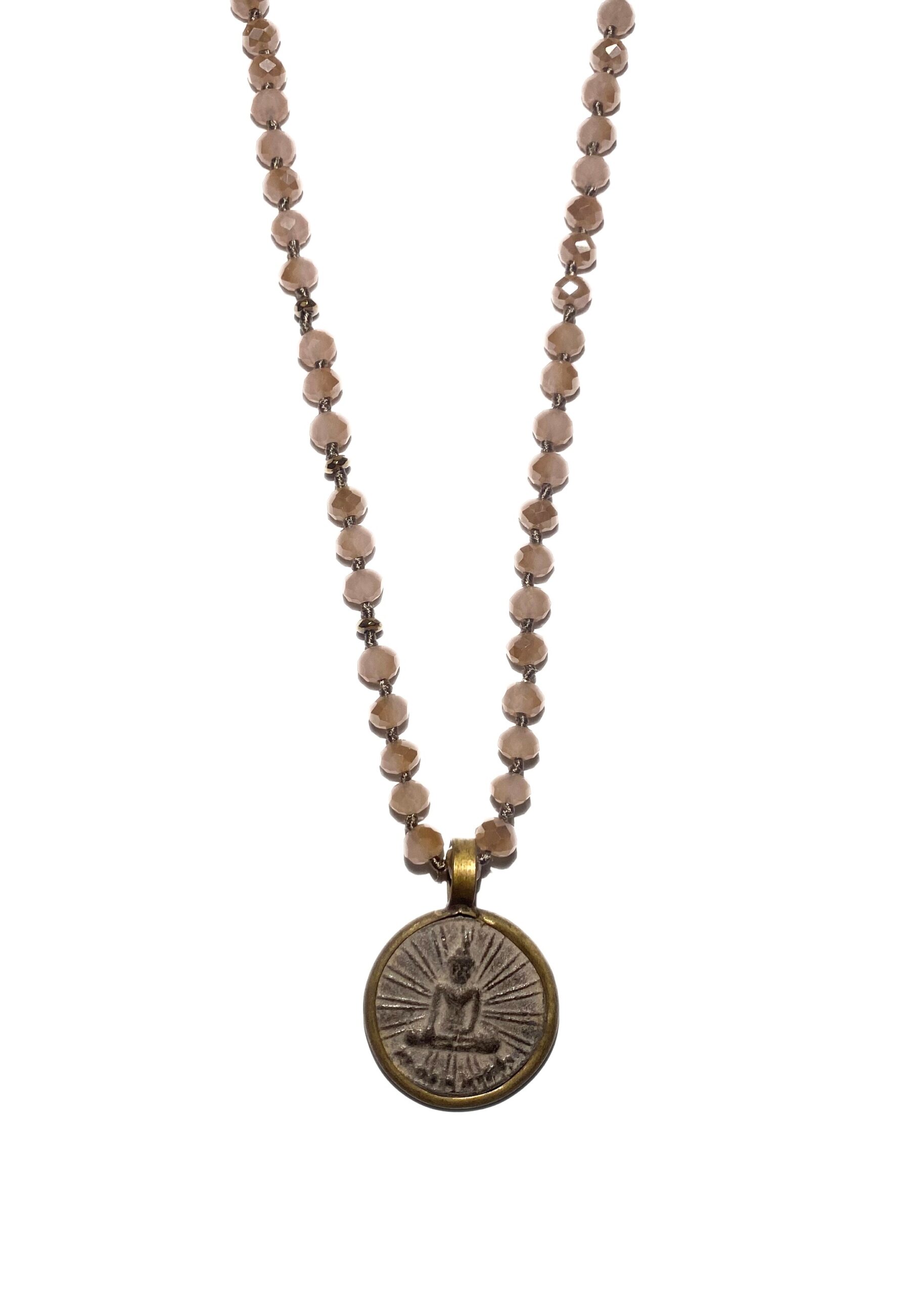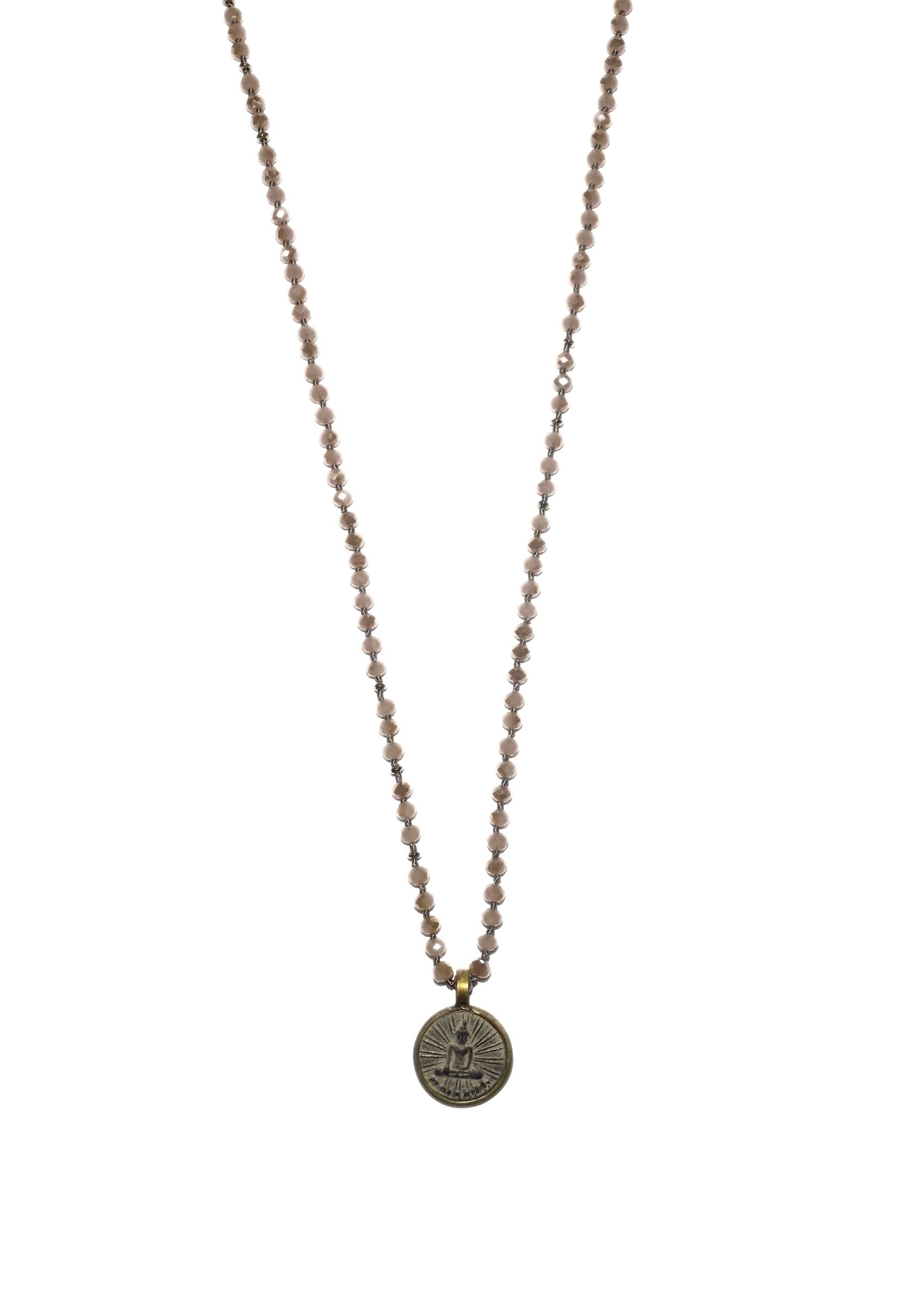 A 6 mm crystal yoga necklace with a Buddha amulette charm.