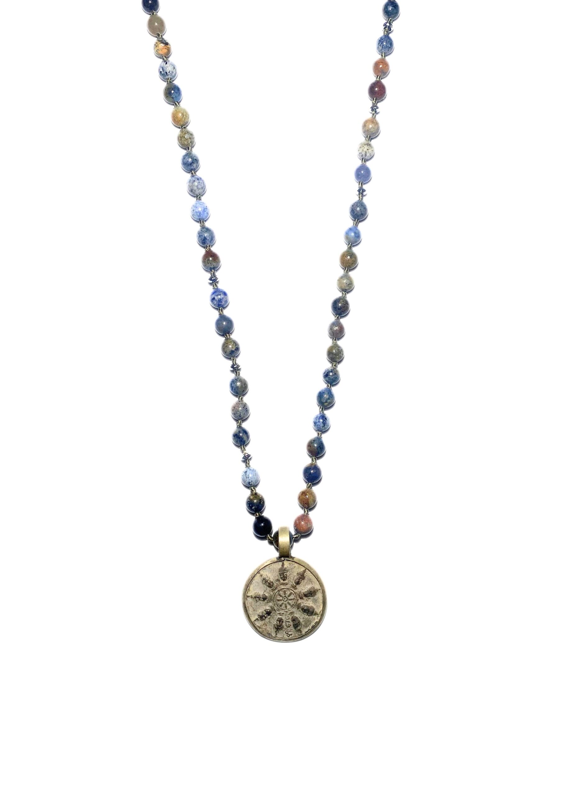A 6 mm lava stone yoga necklace with a Buddha amulette charm.