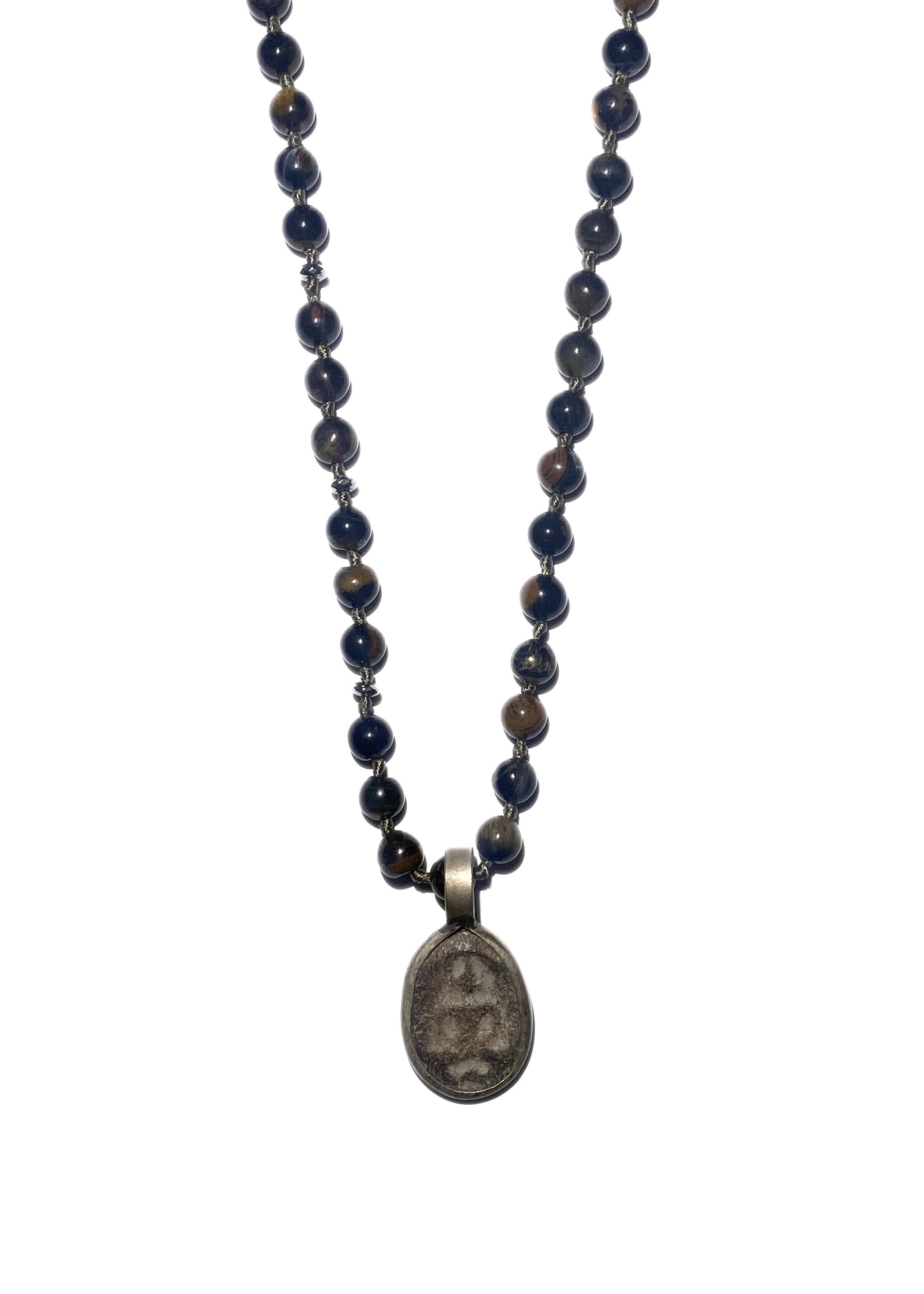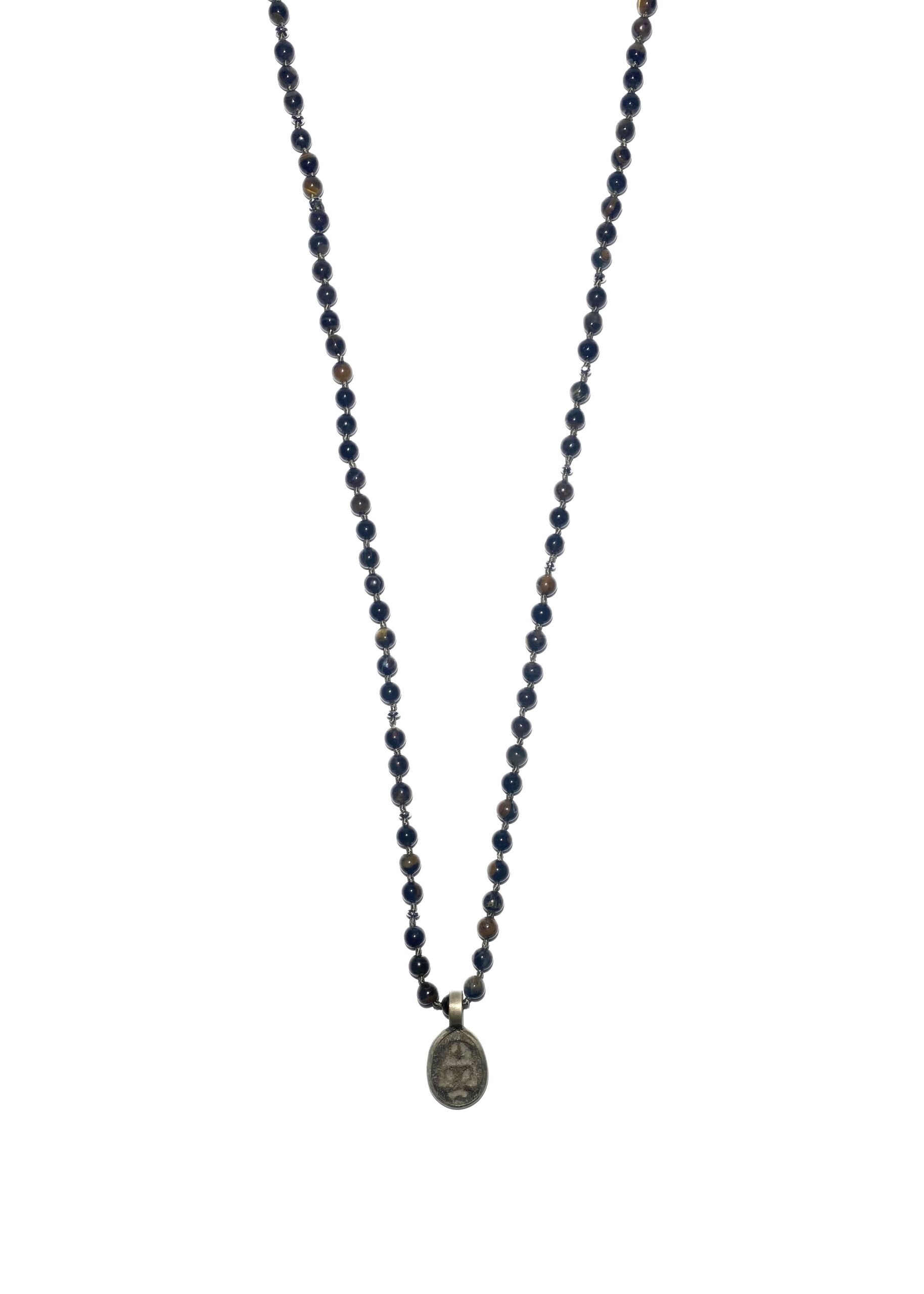 A 6 mm stone yoga necklace with a Buddha amulette charm.